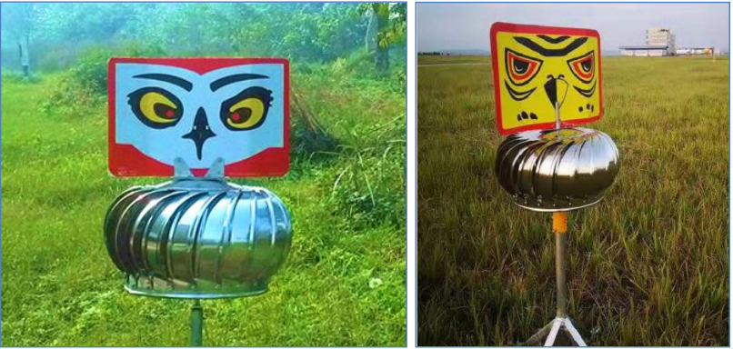 (1)恐怖眼驱鸟部分是在奇怪造型物体内安装闪烁的灯光,通过强烈的光线刺